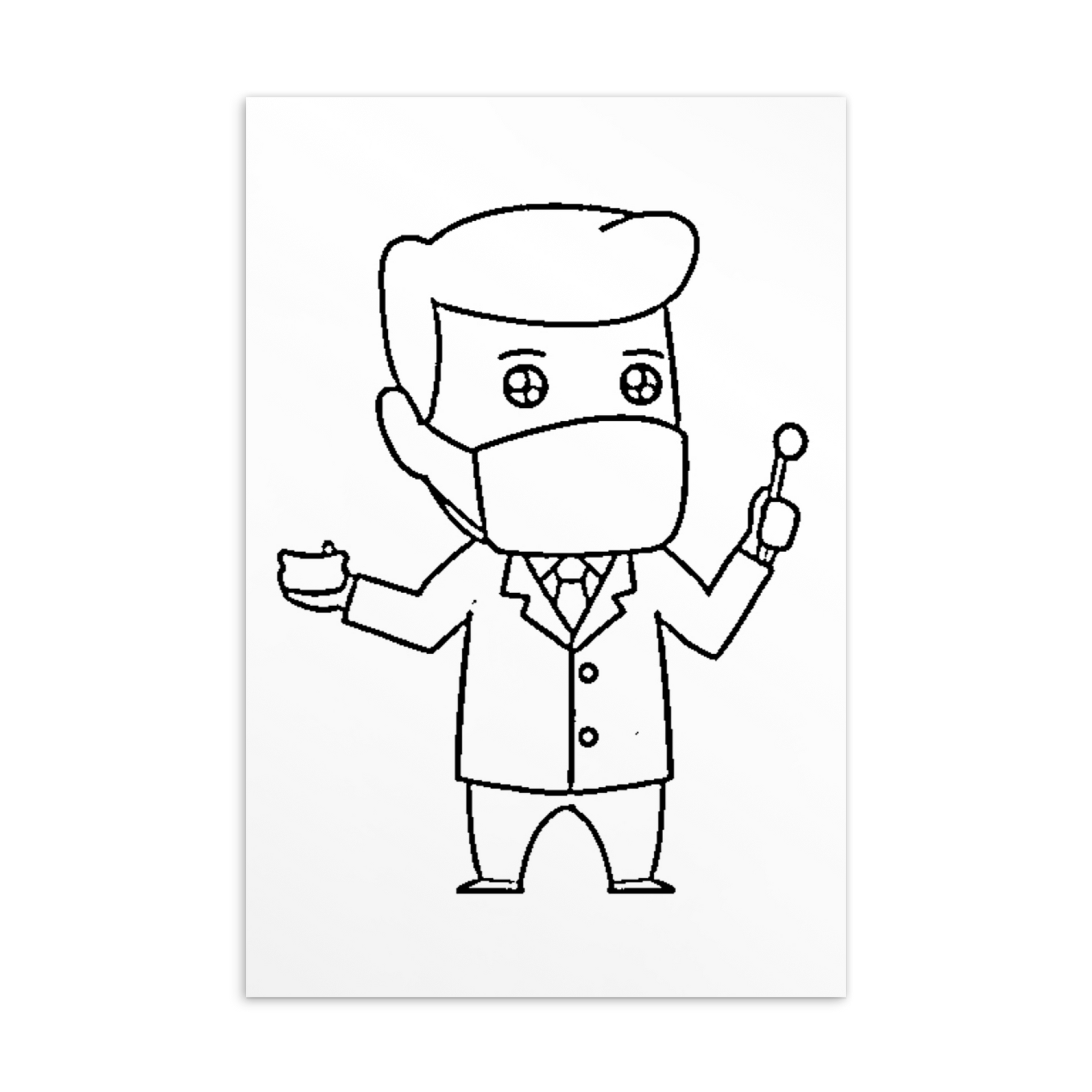 Colouring-in Cards - Dentist Holding Dental Mirror
