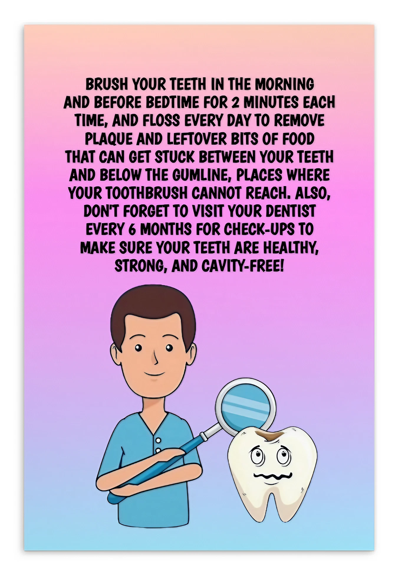 Oral Hygiene Cards- Brush Your Teeth In The Morning And Before Bedtime For 2 Minutes Each Time