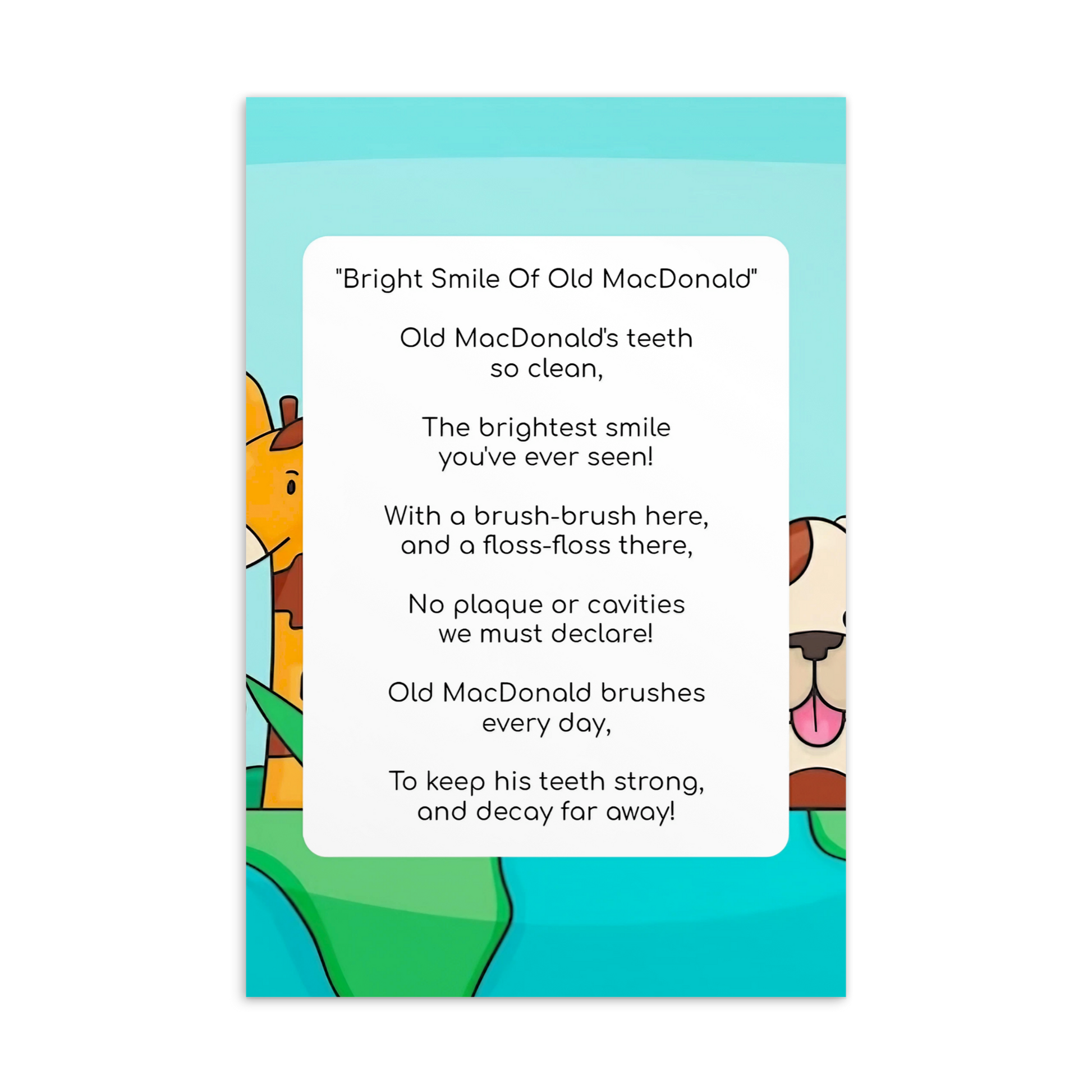 Toothbrushing Song Cards- Bright Smile Of Old MacDonald