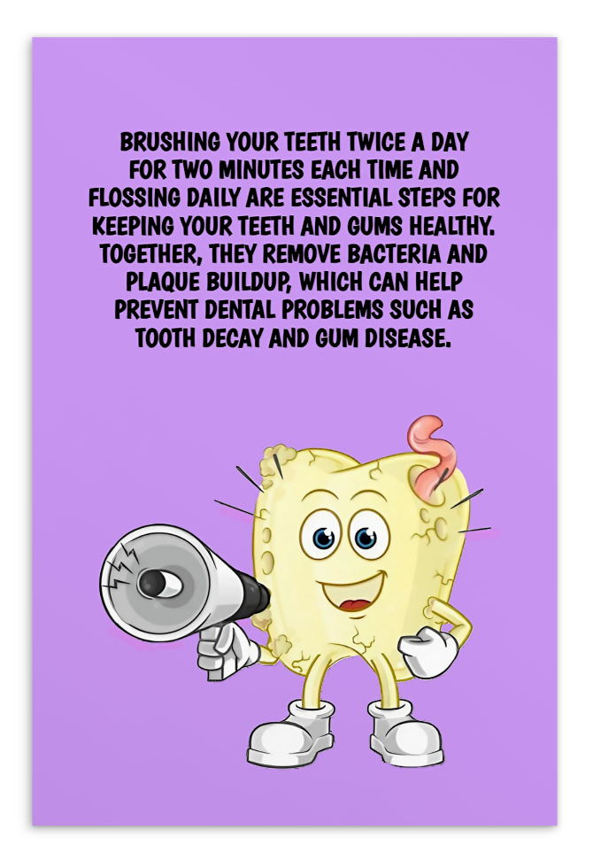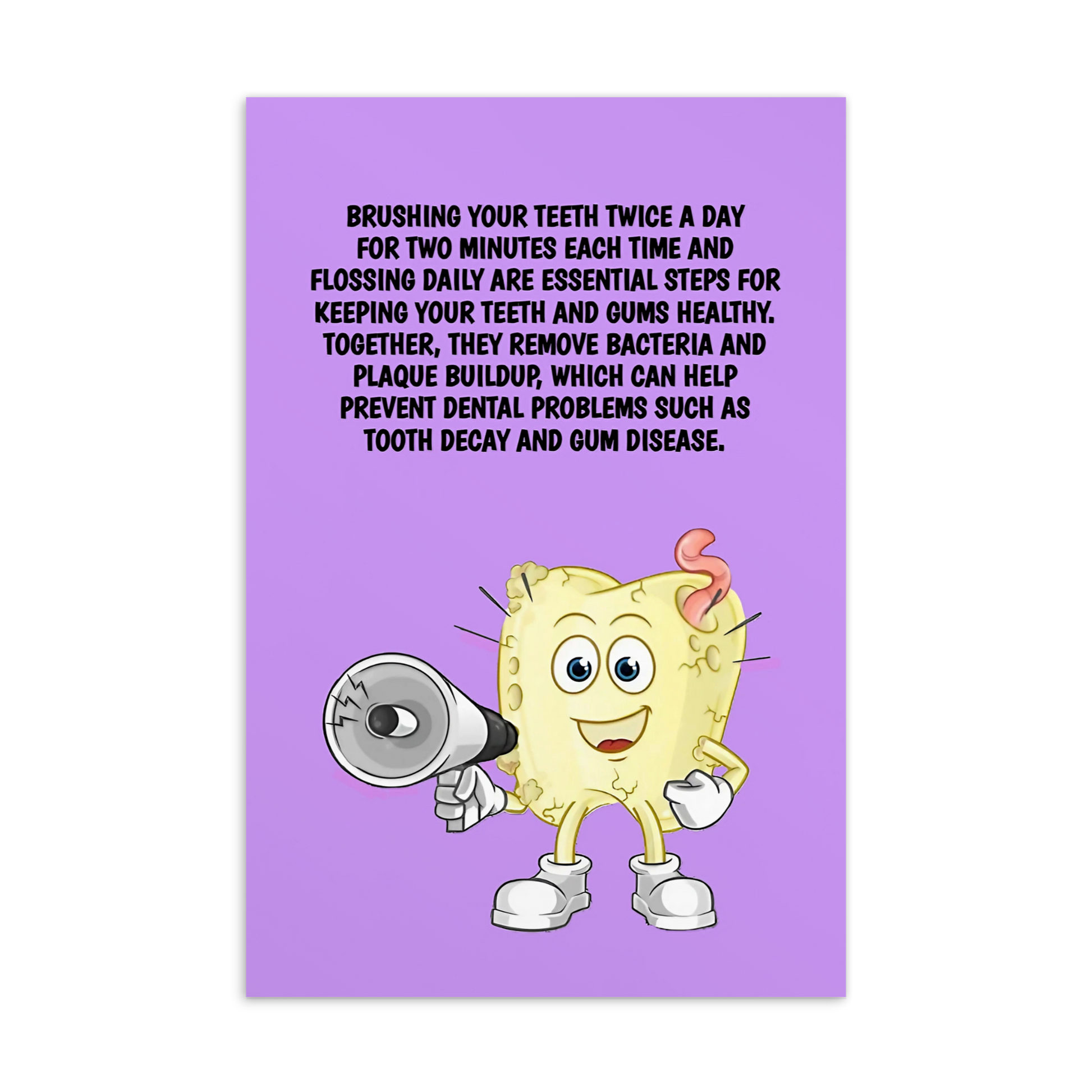 Oral Hygiene Cards- Brushing Your Teeth Twice A Day For Two Minutes Each Time And Flossing Daily Are Essential Steps