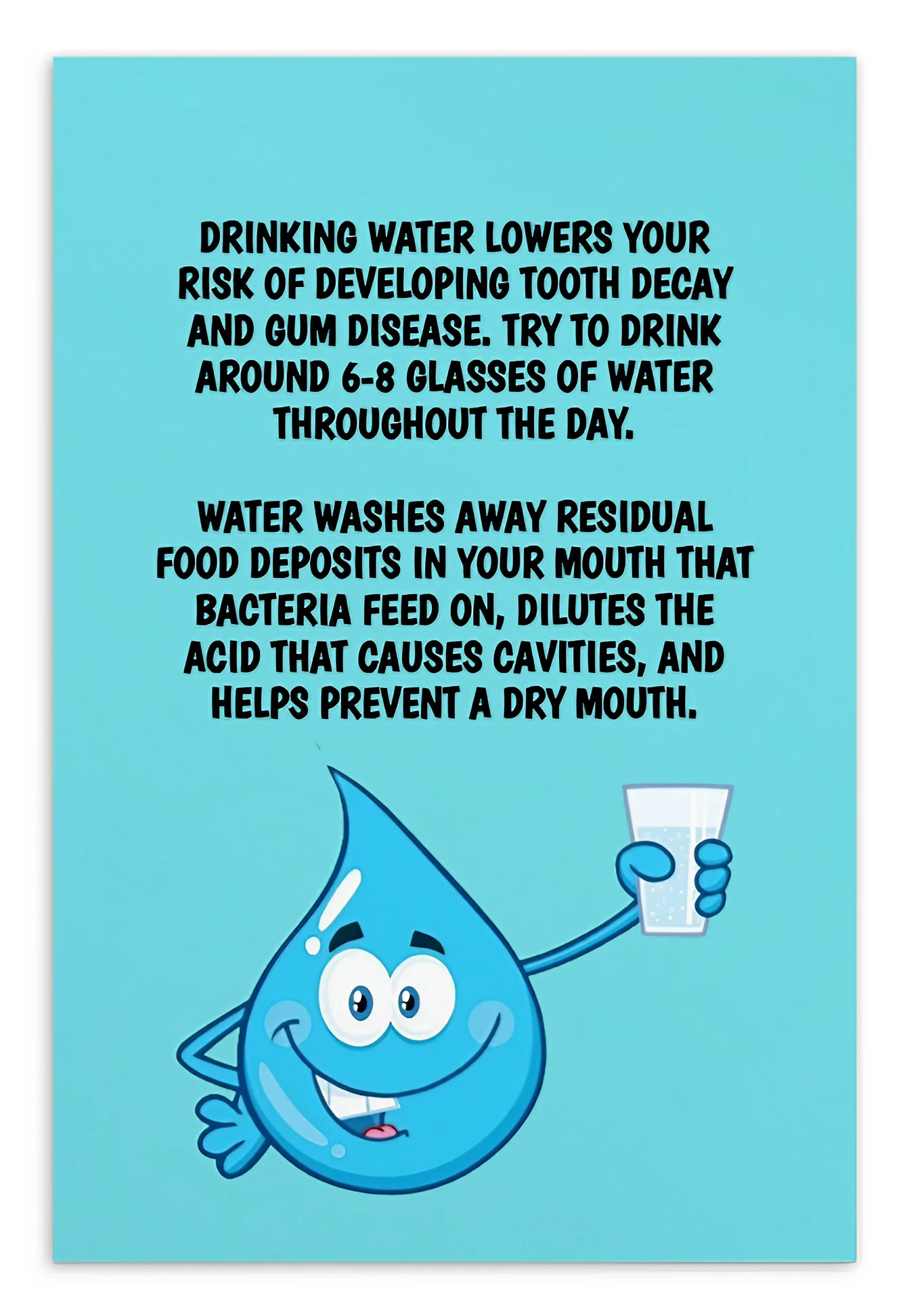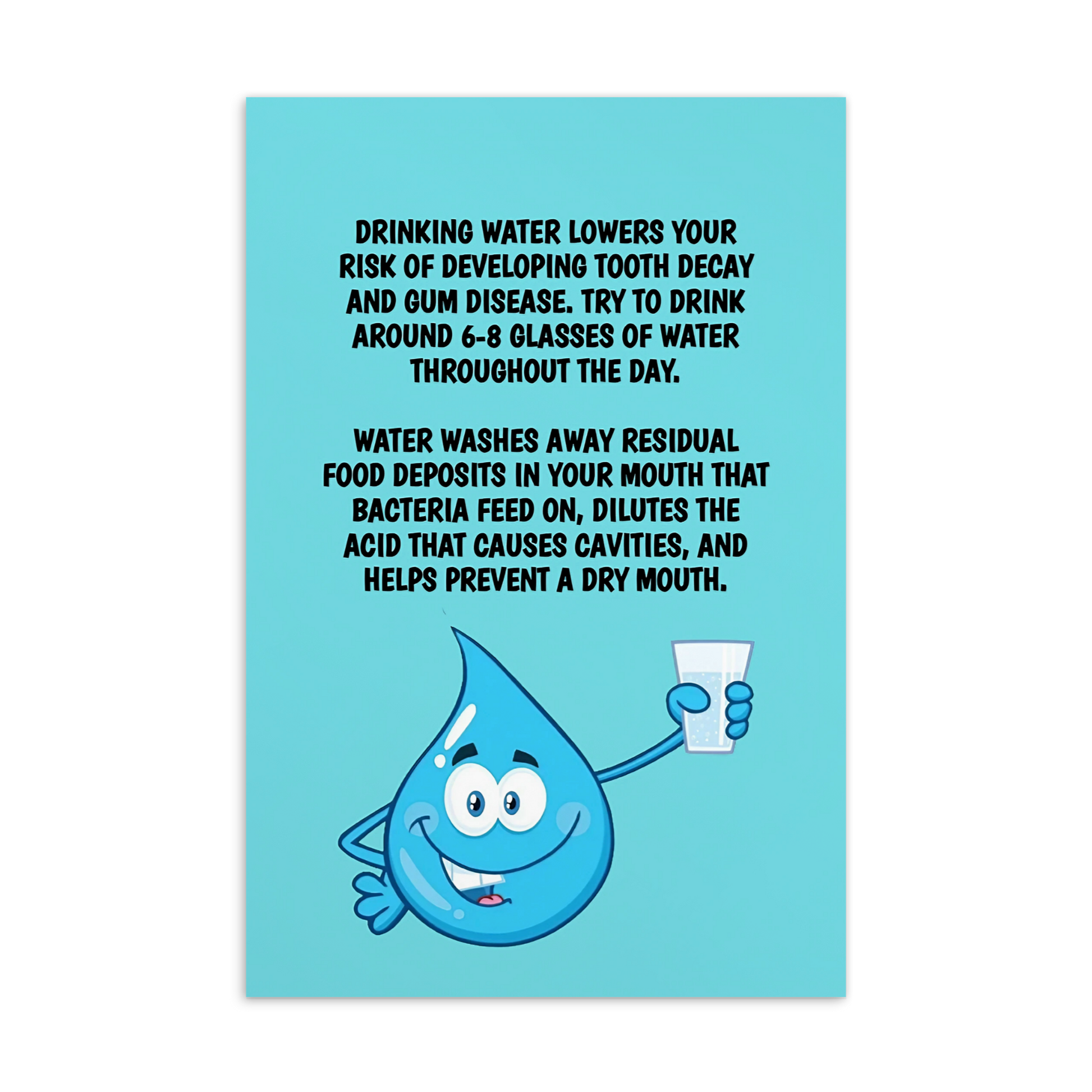 Oral Hygiene Cards- Drinking Water Lowers Your Risk Of Developing Tooth Decay And Gum Disease