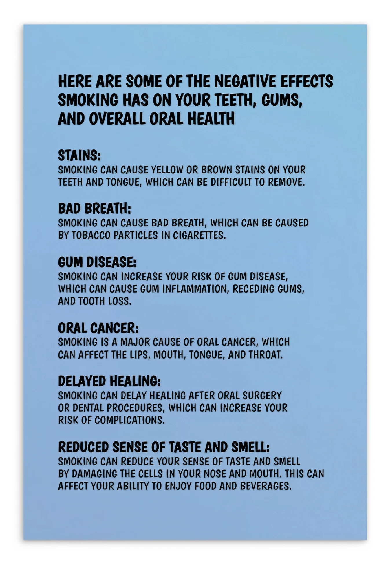 Oral Hygiene Cards- Here Are Some Of The Negative Effects Smoking Has On Your Teeth, Gums, And Overall Oral Health