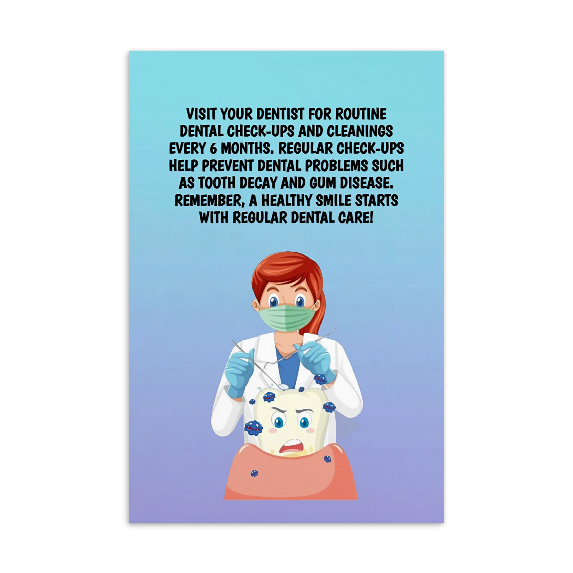 These cards are valuable tools that can be distributed to patients during dental appointments, serving as a prompt for discussing the significance of maintaining proper oral hygiene habits. Dental professionals can easily distribute these cards to reinforce the importance of oral health education with their patients.