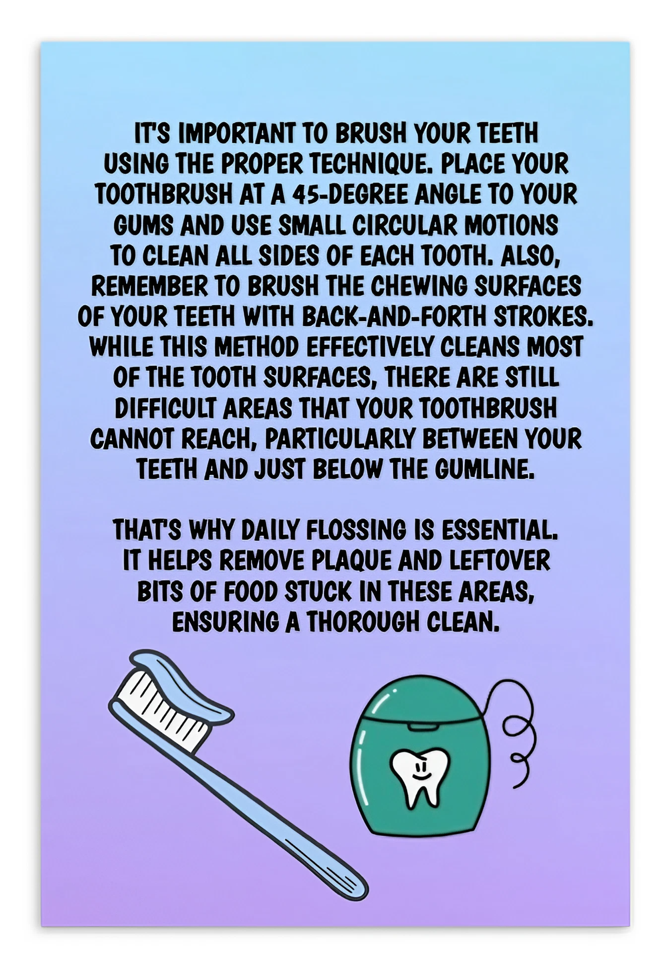 Oral Hygiene Cards- It's Important To Brush Your Teeth With The Proper Technique
