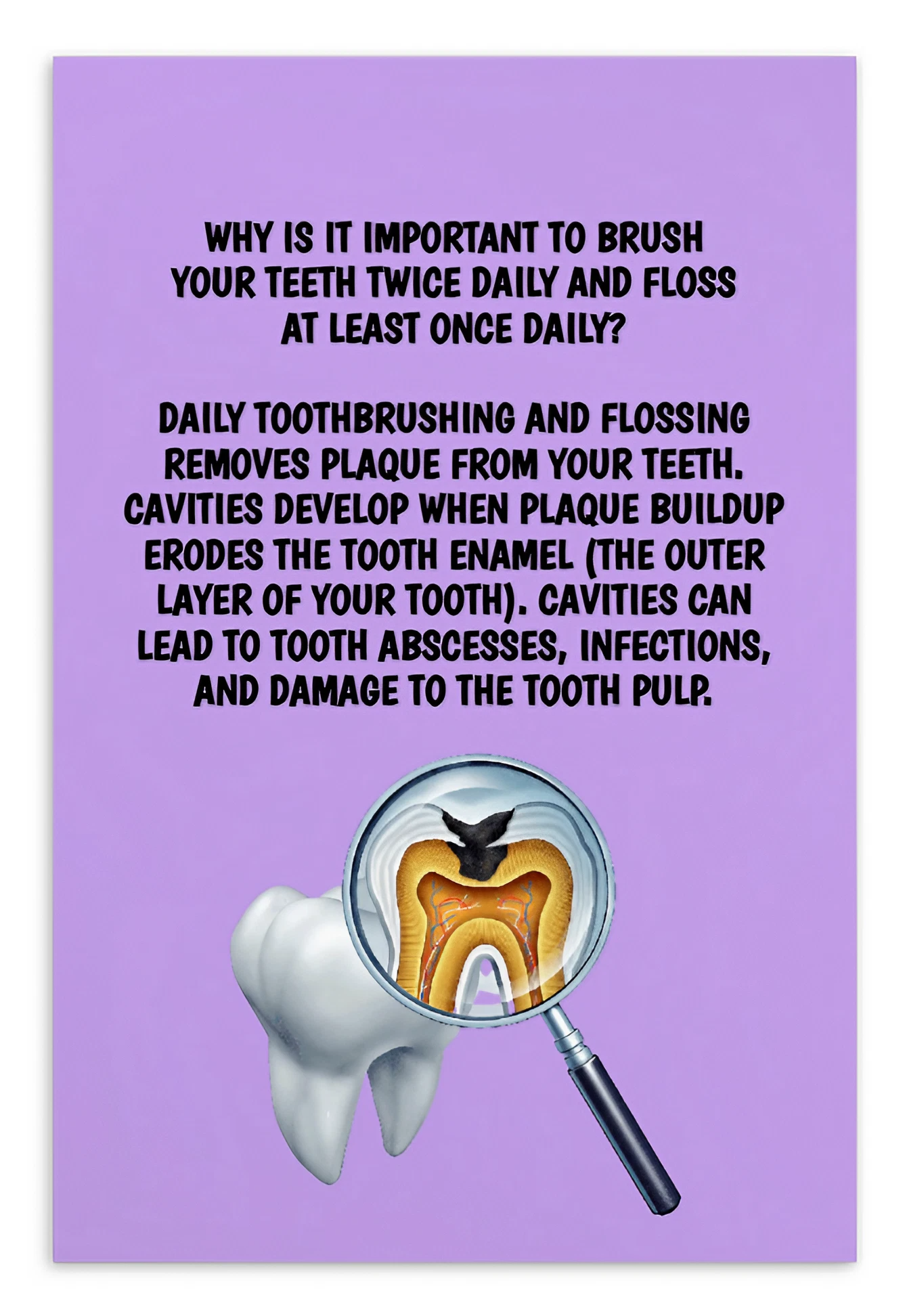 Oral Hygiene Cards- Why Is It Important To Brush Your Teeth Twice Daily And Floss At Least Once Daily?