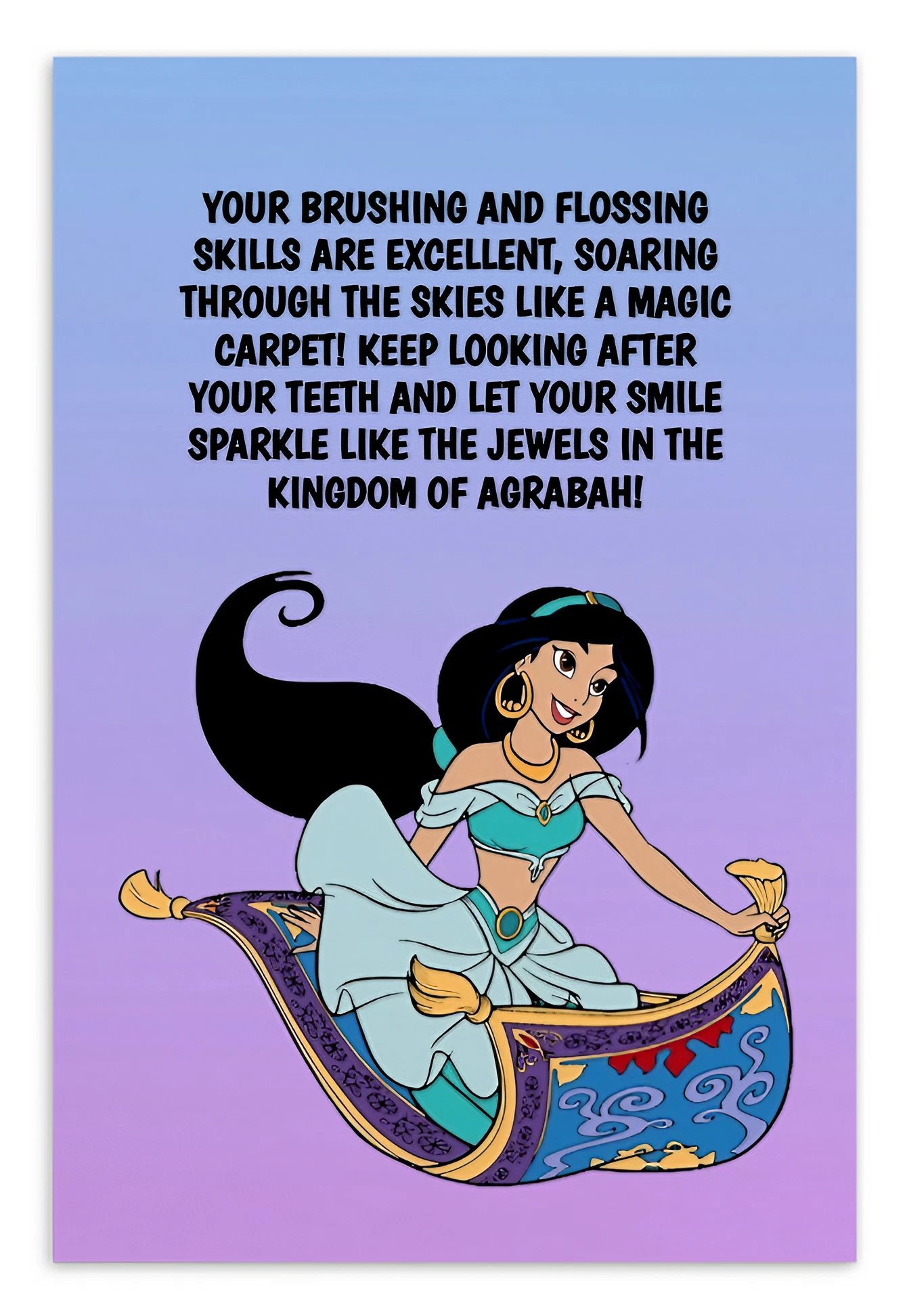 Princess Jasmine | Dental Motivational & Reward Cards- Your Brushing And Flossing Skills Are Excellent!