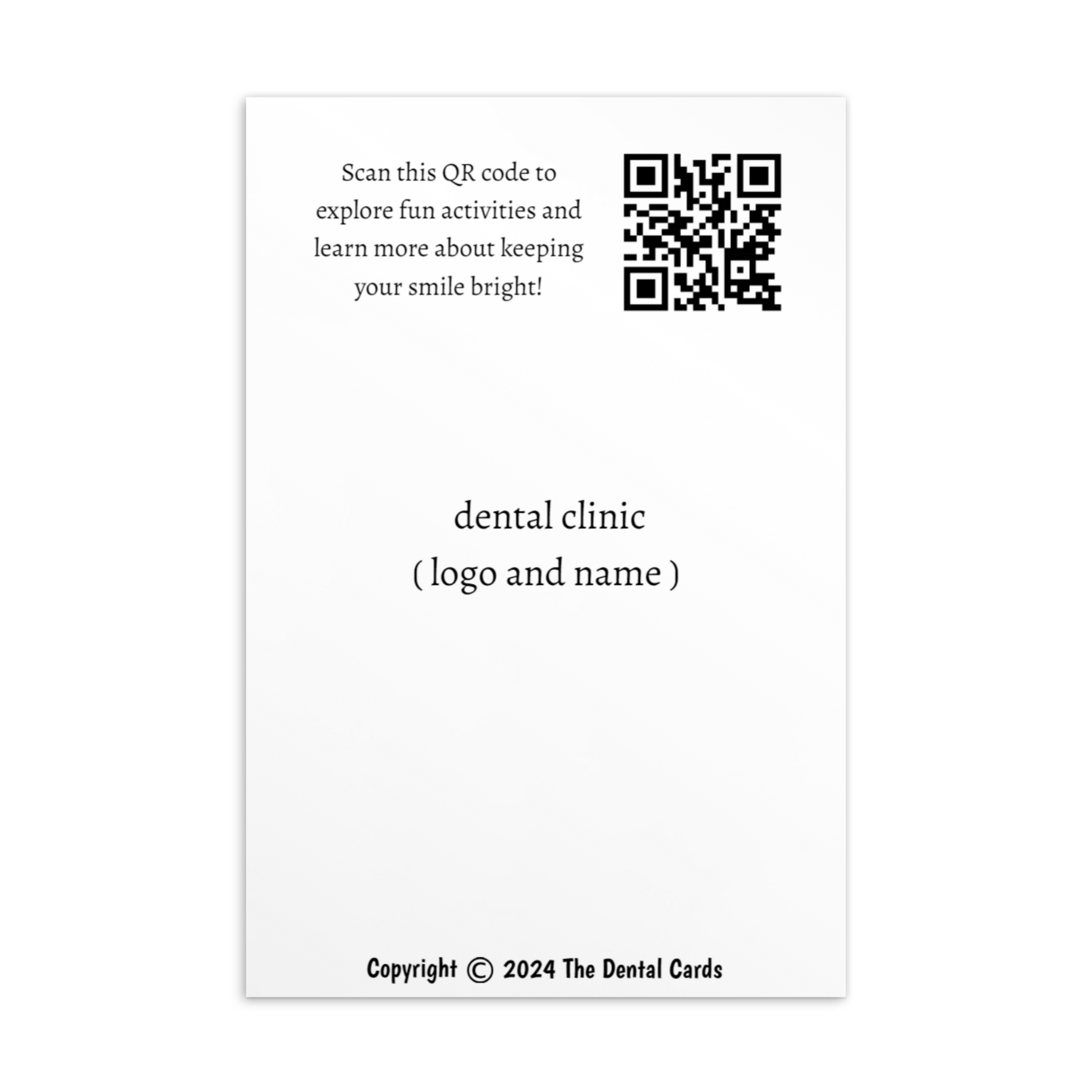 ★ Advertise your dental clinic by including its logo and name on the back of the card; positioning may be found in the product images. To make this request, simply state the name of your dental clinic at the "order special instructions" box at the cart page or email us hello@thedentalcards.com