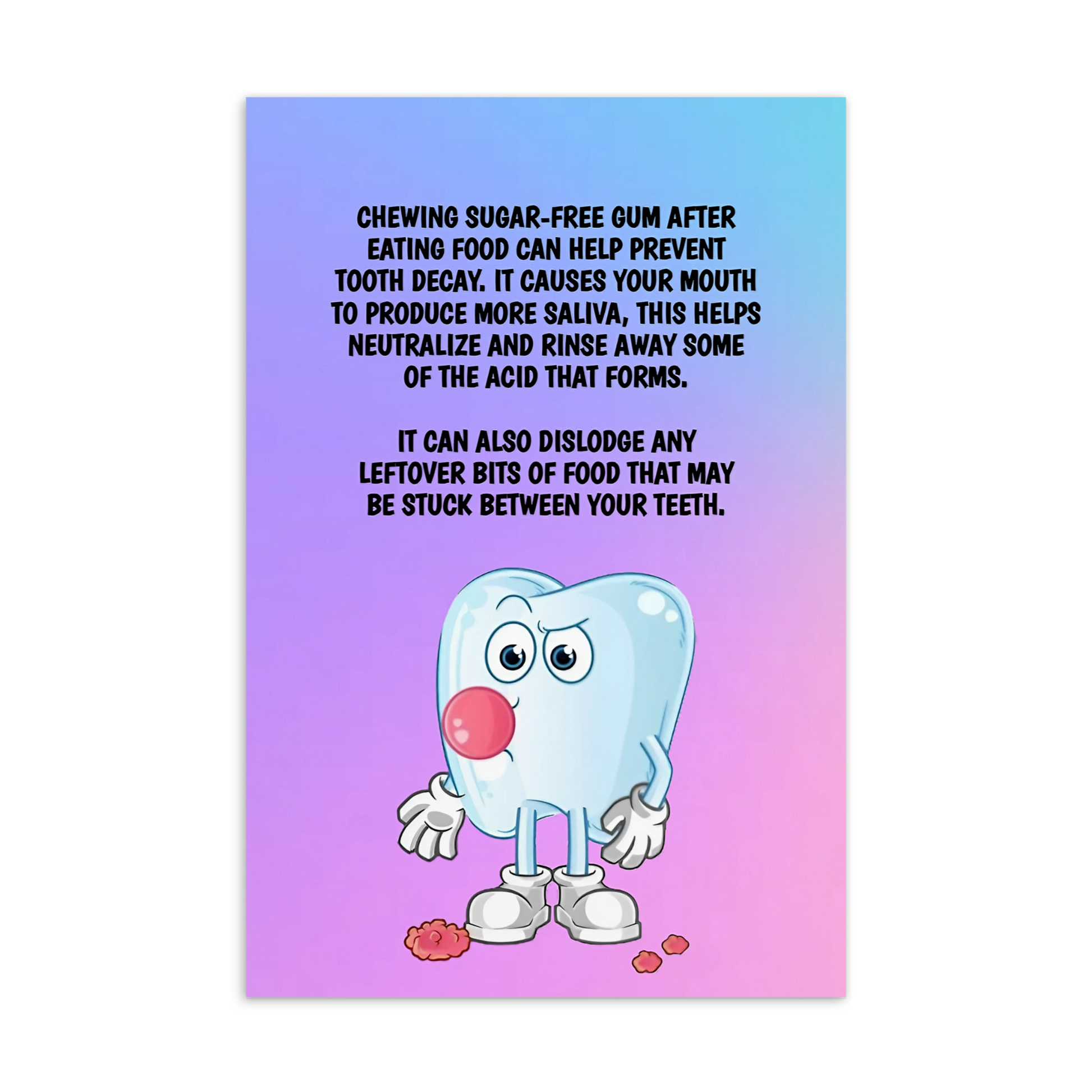 Oral Hygiene Cards- Chewing Sugar-Free Gum After Eating Food Can Help Prevent Tooth Decay.