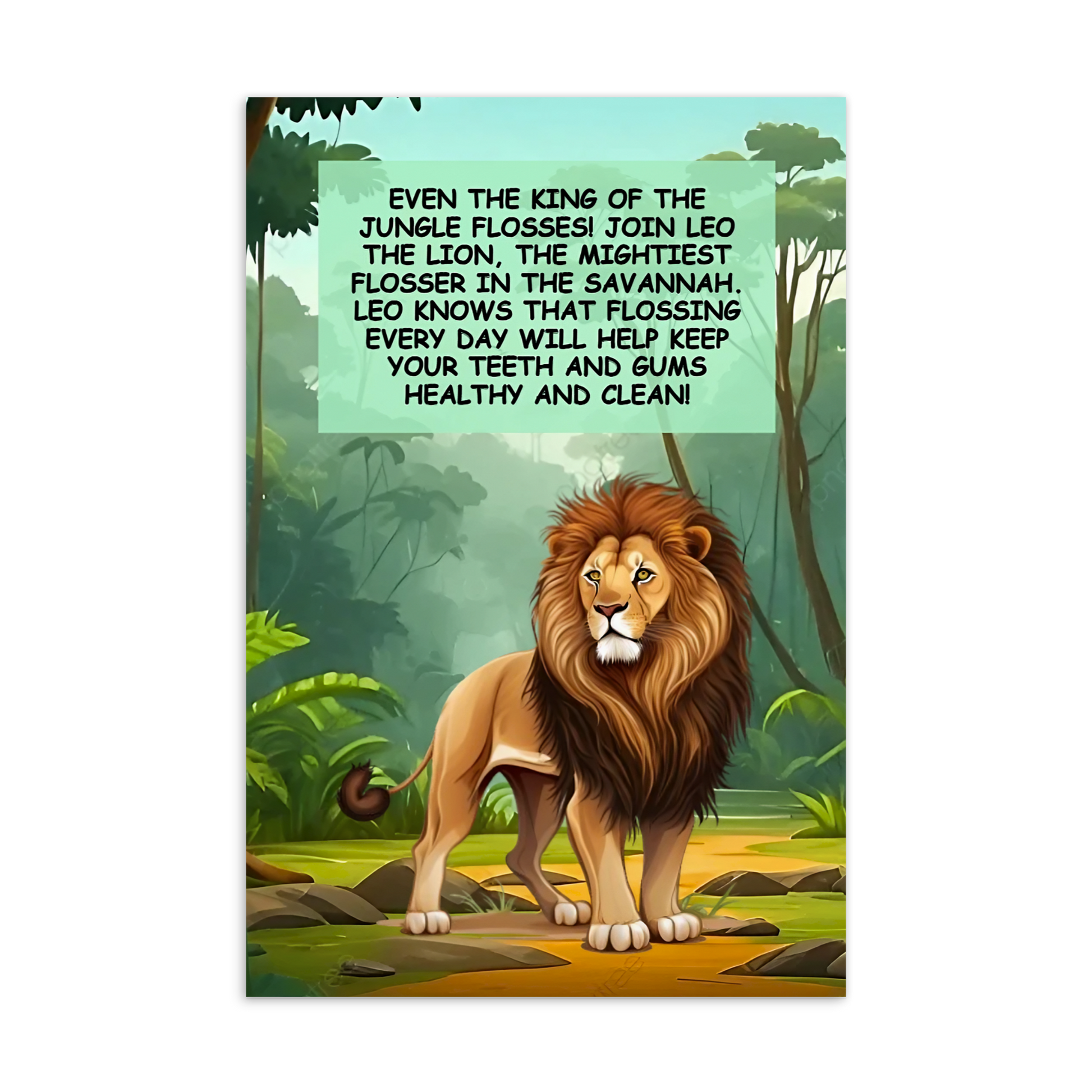 Oral Hygiene Cards- Even The King Of The Jungle Flosses! Join Leo The Lion, The Mightiest Flosser In The Savannah