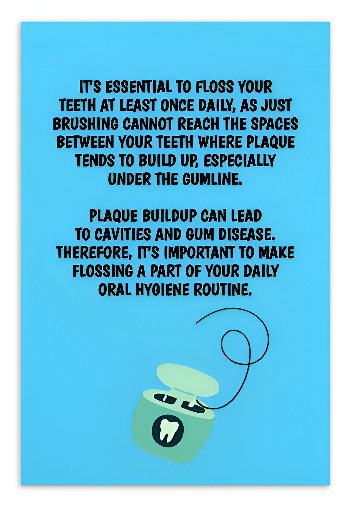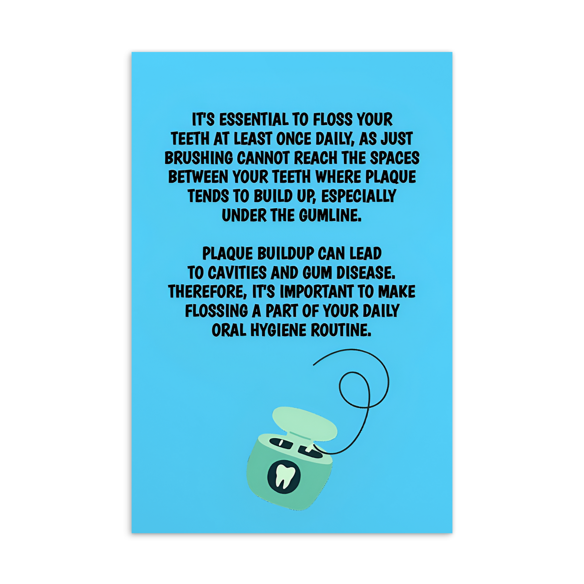 Oral Hygiene Cards- It's Essential To Floss Your Teeth At Least Once Daily