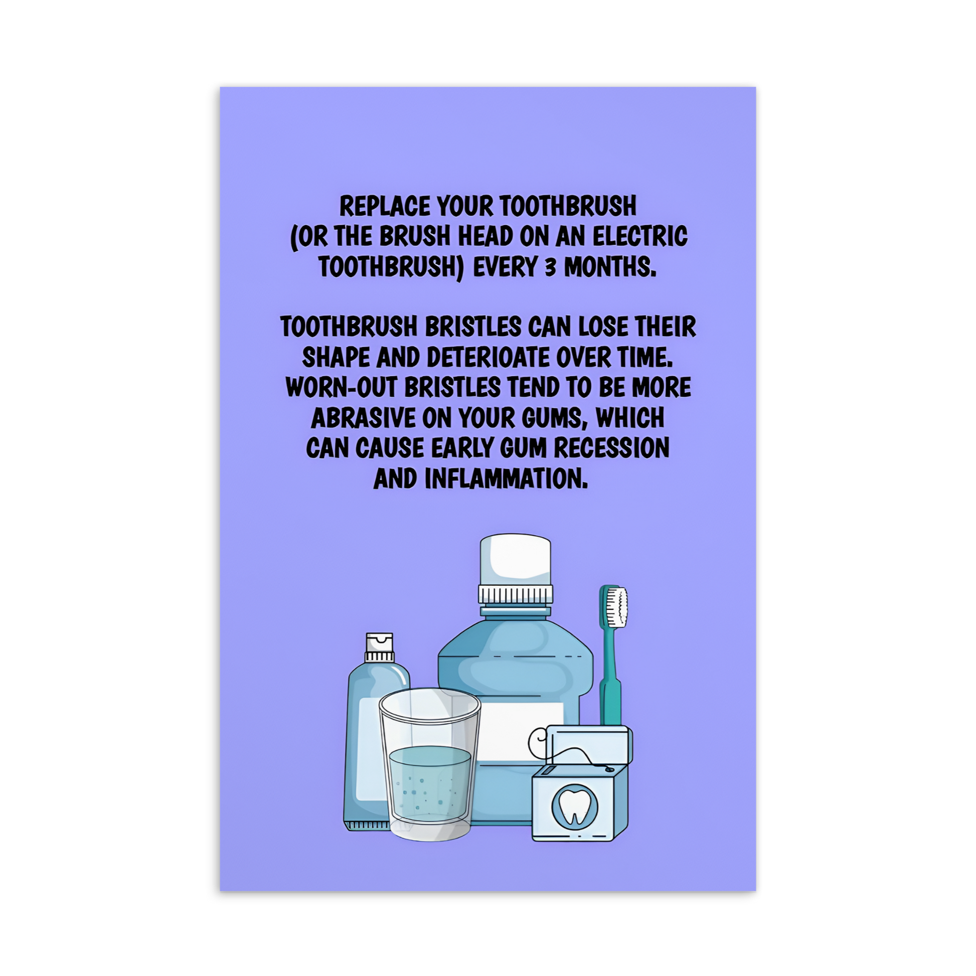 Oral Hygiene Cards- Replace Your Toothbrush (Or The Brush Head On An Electric Toothbrush) Every 3 Months