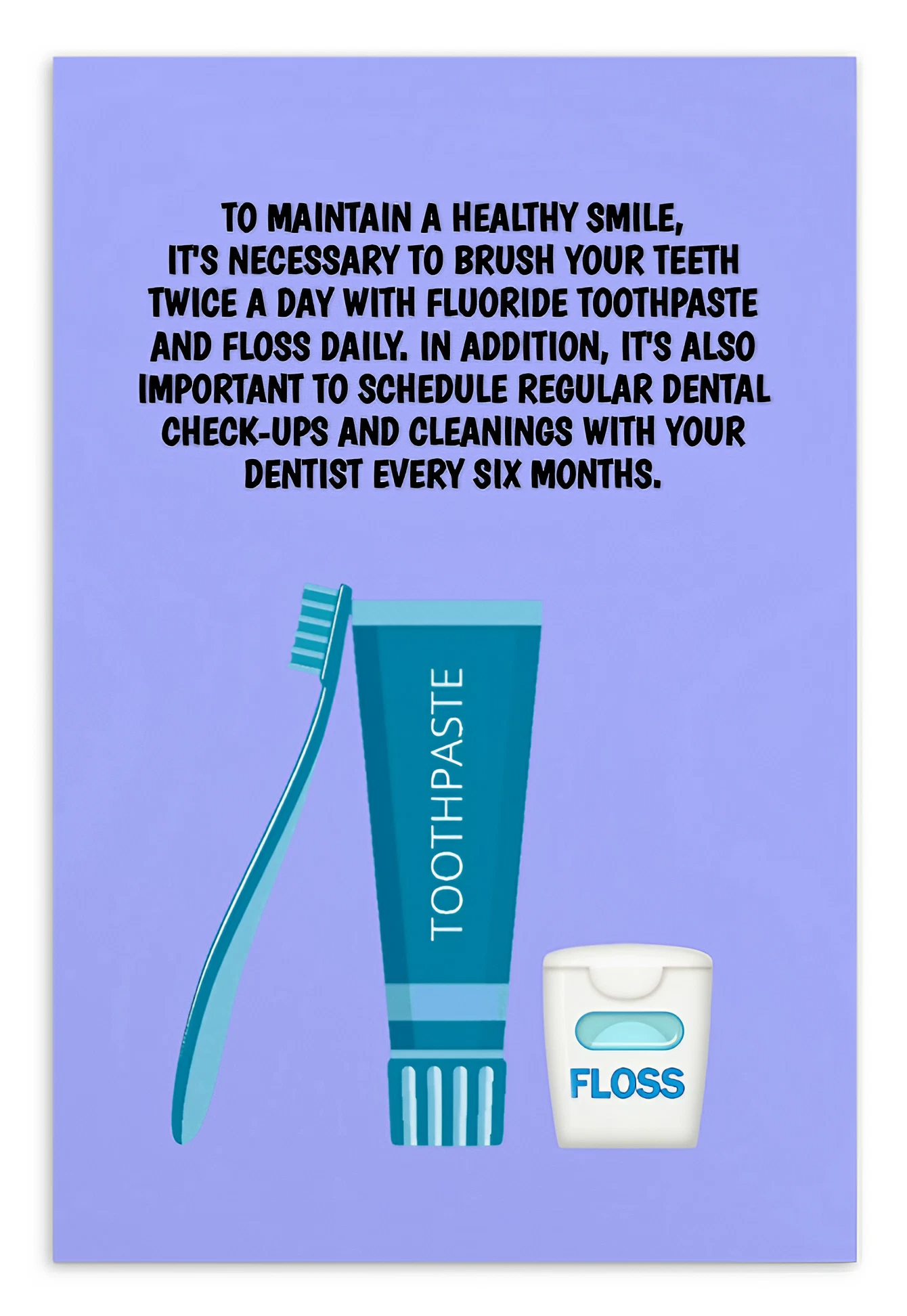 Oral Hygiene Cards- To Maintain A Healthy Smile, It's Necessary To Brush Your Teeth Twice A Day With Fluoride Toothpaste And Floss Daily