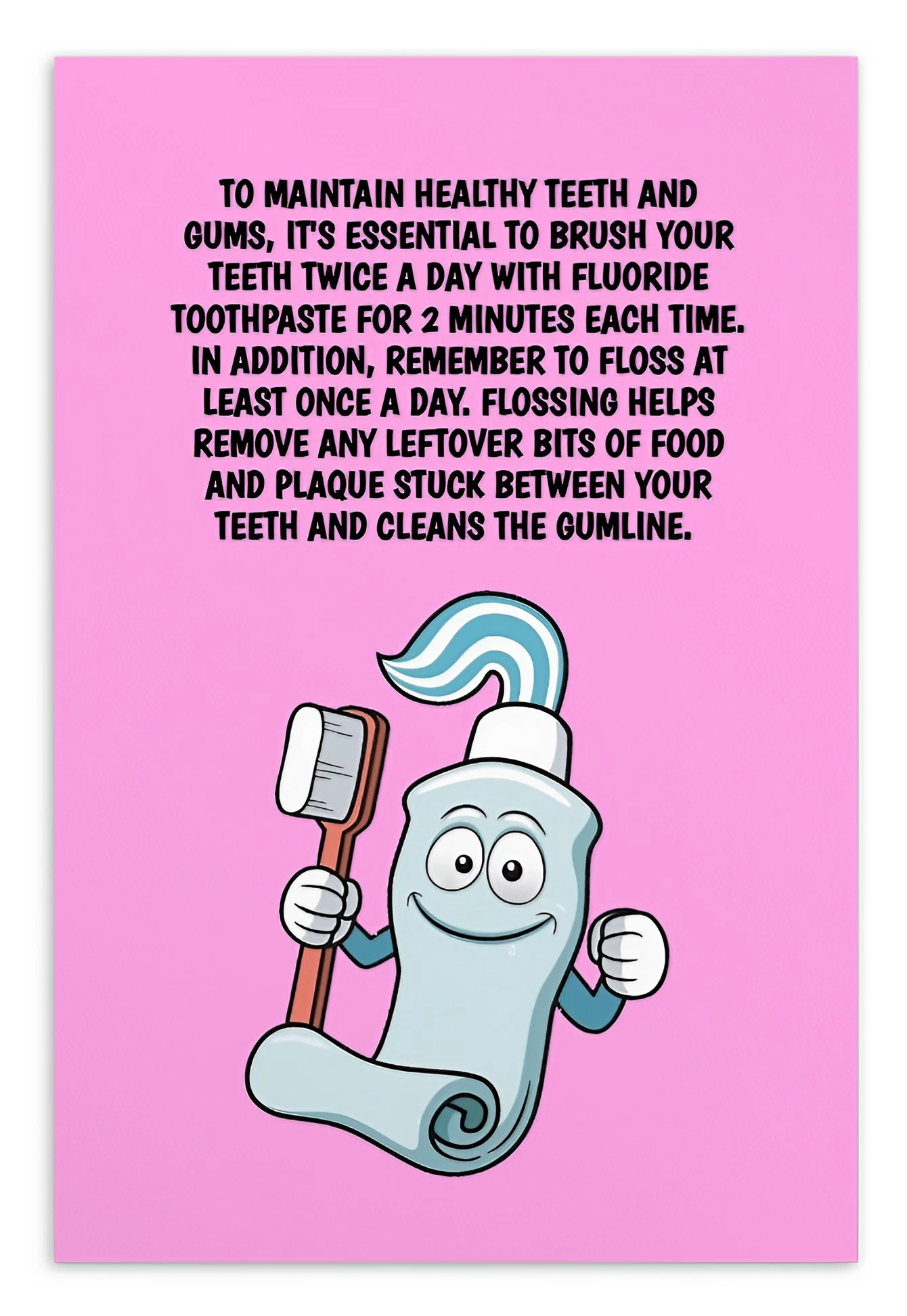 Oral Hygiene Cards- To Maintain Healthy Teeth And Gums, It's Essentail To Brush Your Teeth Twice A Day With Fluoride Toothpaste