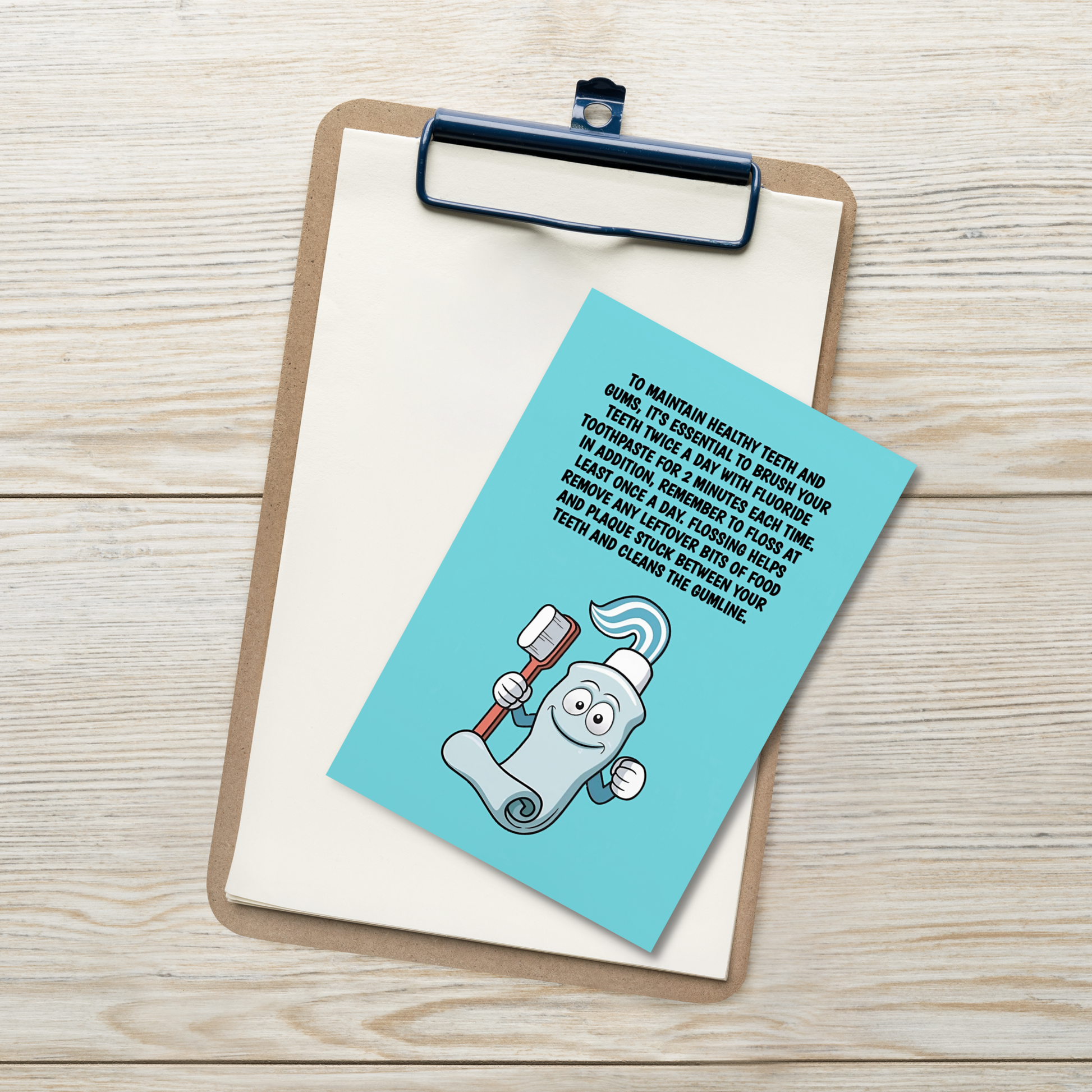 Oral Hygiene Cards- To Maintain Healthy Teeth And Gums, It's Essential To Brush Your Teeth Twice A Day With Fluoride Toothpaste